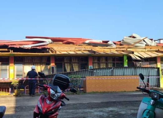SEGAMAT, 20 Jun -Tiga kali mangsa, V. Mahadevi, 55, menjerit meminta tolong selepas dihempap bumbung sekolah ‘terbang’ di bahagian dapur rumahnya di Kampung Tahang Rimau di sini malam tadi.